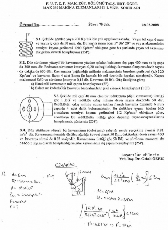 Anahtar Kelimeler: Makina Elemanları -2 Vize Soruları Arasınav Soruları 2008 Fırat Üniversitesi fu