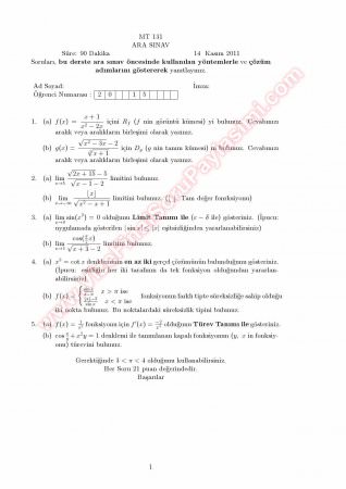 Analiz 1 Vize Soruları Ve Çözümleri -2011 Paylaşan: must52 Tarih: 31-08-2015, 18:20 Gösterim: 34 867 Devamı