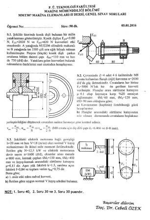 Anahtar Kelimeler: final soruları Makine Elemanları -1 Fırat Üniversitesi 2016 2016