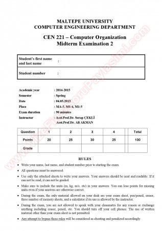 Anahtar Kelimeler: Computer Organizations Midterm Question And Answers