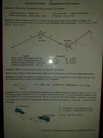 Anahtar Kelimeler: Karadeniz Technical University Transportation -1 Midterm Exam questions Solutions Answers