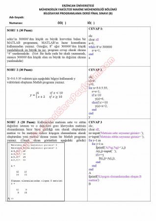 Bilgisayar Programlama (Matlab) Final Soruları ve Cevapları Paylaşan: Admin Tarih: 10-08-2015, 00:07 Gösterim: 26 784 Devamı