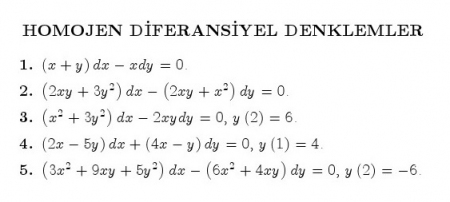 Anahtar Kelimeler: Homojen Diferansiyel Denklemler Çalışma Soruları