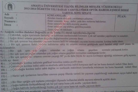 Anahtar Kelimeler: Fiber Optik Haberleşmesi Final Soruları Amasya Üniversitesi EEM