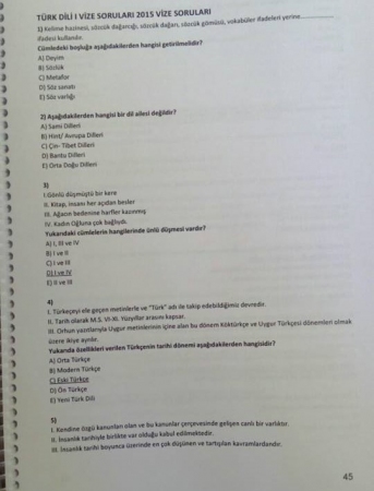 Anahtar Kelimeler: Erzurum Atatürk Üniversitesi vize soruları Test Soruları 2016 Türk Dili -1