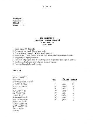 Anahtar Kelimeler: Fizik -2 Arasınav Soruları Vize Soruları ve Cevapları 2009 Düzce Üniversitesi