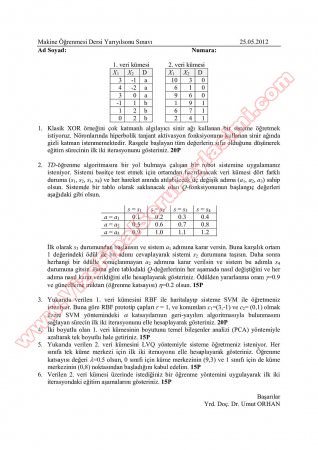 Anahtar Kelimeler: makine ogrenmesi dersi final sorulari cukurova uni universitesi
