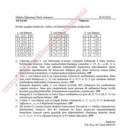 Anahtar Kelimeler: makine ogrenmesi dersi vize sorulari cevaplari cozumleri cukurova