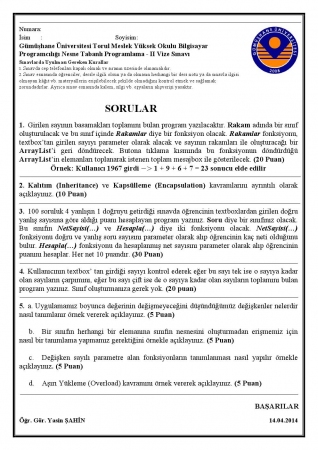 Anahtar Kelimeler: Nesne Tabanlı Programlama 2 vize soruları Gümüşhane Üniversitesi
