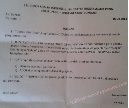 Anahtar Kelimeler: Görsel Programlama Görsel Programlama -2 Vize Soruları Selçuk Üniversitesi Bozkır MYO