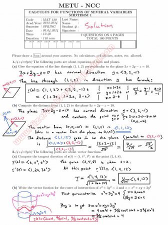 Anahtar Kelimeler: Calculus Functions Several Variables Questions Solutions Midterm Exam