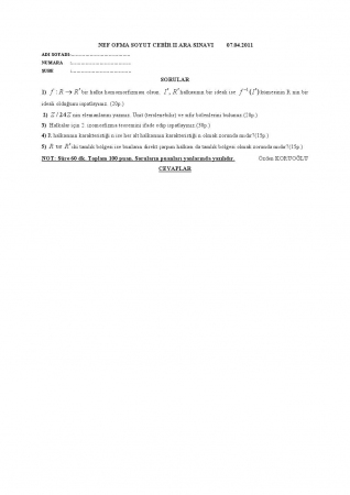 Soyut Cebir 2 Vize Soruları 2011 Paylaşan: kıvırcık mühendis Tarih: 23-12-2015, 20:51 Gösterim: 4 004 Devamı