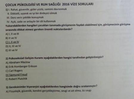 Anahtar Kelimeler: Erzurum Atatürk Üniversitesi Çocuk Psikolojisi ve Ruh Sağlığı Dersi Vize Soruları Cevapları Test Soruları