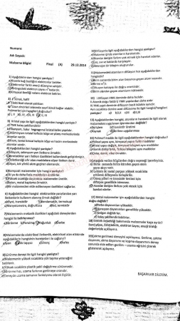 Anahtar Kelimeler: Malzeme Bilgisi Dersi Malzeme Bilgisi Final Soruları İstanbul Üniversitesi Teknik Bilimler Meslek Yüksek Okulu Test Soruları 2014