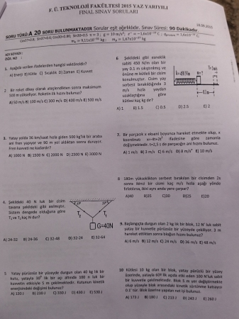 Anahtar Kelimeler: Fizik -1 Fizik fizik1 fizik 1 final soruları test Fırat Üniversitesi