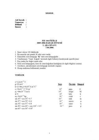 Anahtar Kelimeler: Fizik Fizik-2 Arasınav soruları düzcce üniversitesi bahar dönemi