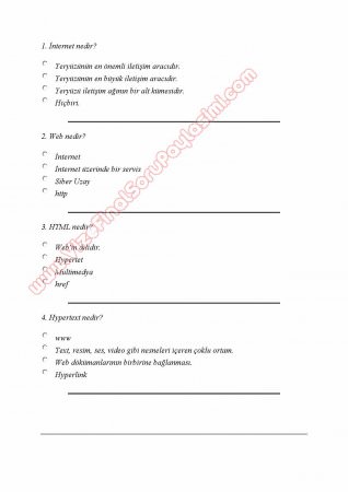 Anahtar Kelimeler: internet programciligi dersi calisma sorulari test