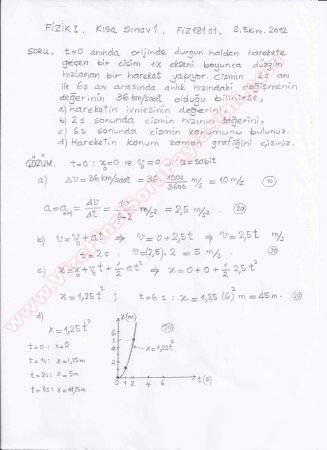 Anahtar Kelimeler: Fizik1 kisa sinav sorulari
