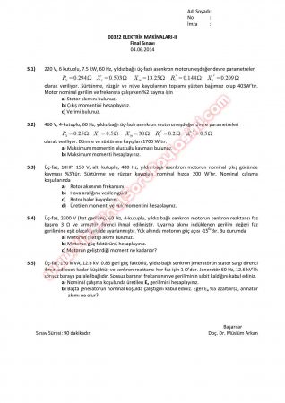 Elektrik Makinaları -2 Final Soruları -2014 Paylaşan: must52 Tarih: 3-08-2015, 23:42 Gösterim: 3 062 Devamı