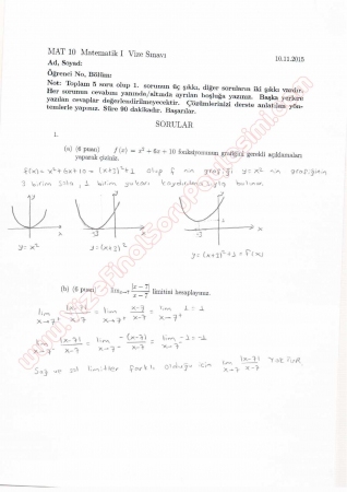 Anahtar Kelimeler: Matematik-1 Matematik1 Vize Soruları Çözümleri 2015 Melikşah Üniversitesi