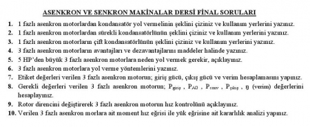 Anahtar Kelimeler: Asenkron ve Senkron Makineler Dersi Final Soruları OMU Mühendislik