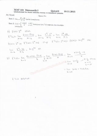 Anahtar Kelimeler: Süleyman Demirel Üniversitesi matematik -1 dersi quiz sorulari vize soruları