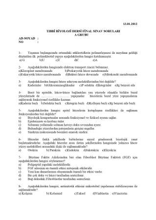 Tıbbi Biyoloji Final Sınav Soruları A Grubu Paylaşan: timurcenq Tarih: 15-10-2022, 16:52 Gösterim: 9 442 Devamı