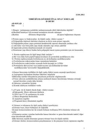 Tıbbi Biyoloji Final Sınav Soruları B Grubu Paylaşan: timurcenq Tarih: 15-10-2022, 16:54 Gösterim: 2 347 Devamı