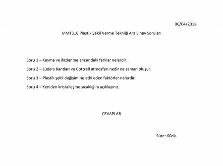 Anahtar Kelimeler: Fırat Üniversitesi Plastik Şekil verme dersi vize soruları