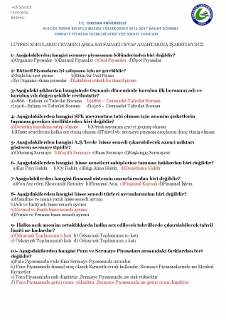 Anahtar Kelimeler: Sermaye Piyasası İşlemleri vize soruları Vize Soruları ve Cevapları Giresun Üniversitesi 2017