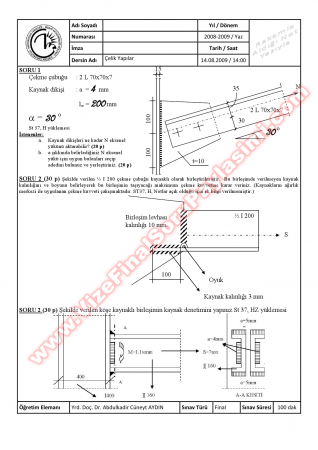 Çelik Yapılar Yaz Okulu Final Soruları - 2008 Paylaşan: must52 Tarih: 14-05-2015, 17:22 Gösterim: 4 641 Devamı