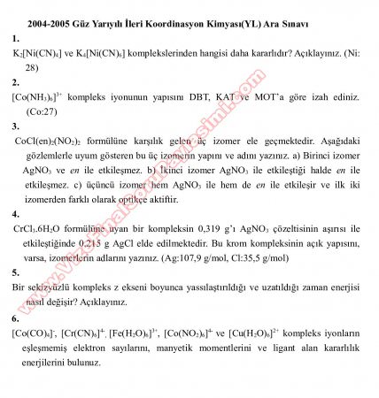 İleri Koordinasyon Kimyası Vize Soruları Paylaşan: Admin Tarih: 11-06-2015, 20:57 Gösterim: 3 466 Devamı