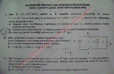 Kategori: Vize ve Final Soruları / İstanbul Üniversitesi / Fizik-2