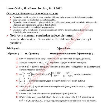 Anahtar Kelimeler: lineer cebir-1 cebir1 final sorulari ktu karadeniz
