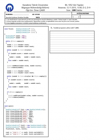 Anahtar Kelimeler: Veri Yapıları Dersi Vize Soruları Karadeniz Teknik Üniversitesi 2015 ktu