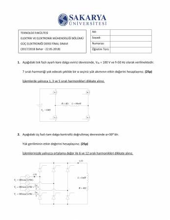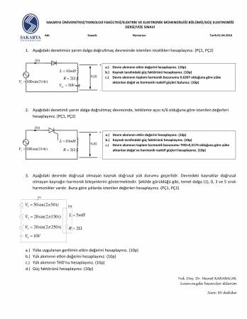 Kategori: Vize ve Final Soruları / Sakarya Üniversitesi / Güç Elektroniği Dersi