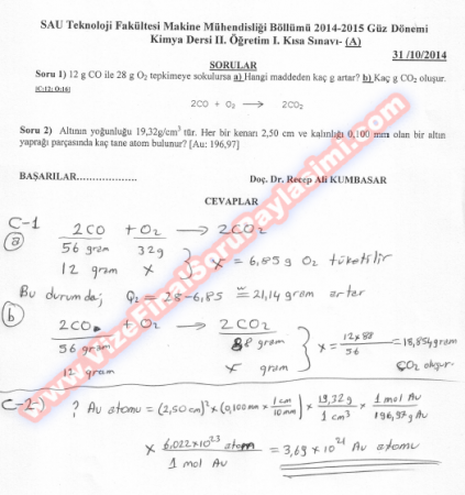Anahtar Kelimeler: kimya dersi final sorulari cevaplari cozumleri sau sakarya uni