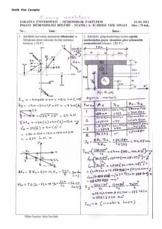 Kategori: Vize ve Final Soruları / Sakarya Üniversitesi / Statik Dersi