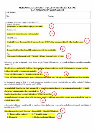 Kategori: Vize ve Final Soruları / Sakarya Üniversitesi / Yapı Malzemesi Dersi