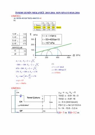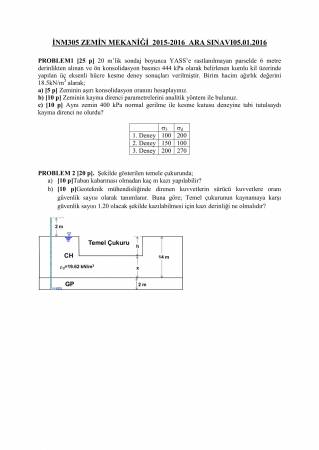 Kategori: Vize ve Final Soruları / Sakarya Üniversitesi / Zemin Mekaniği Dersi