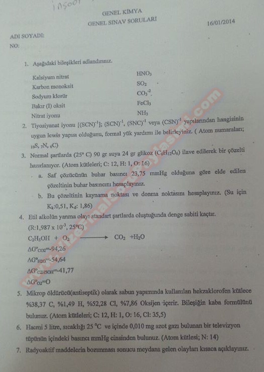 Genel Kimya-2 Final Soruları (2014) 11-06-2014, 23:54