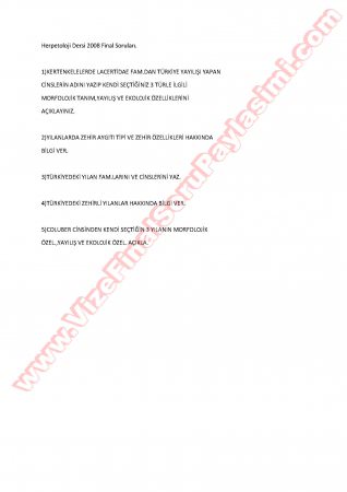Vize ve Final Soruları / Ankara Üniversitesi / Herpotoloji Dersi