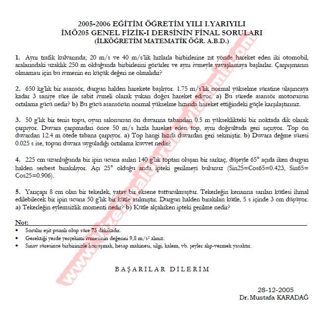 Fizik 1 Final Soruları Ve Cevapları 31-10-2014, 22:18