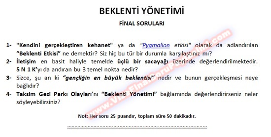 Vize ve Final Soruları / Haliç Üniversitesi / Beklenti Yönetimi Dersi