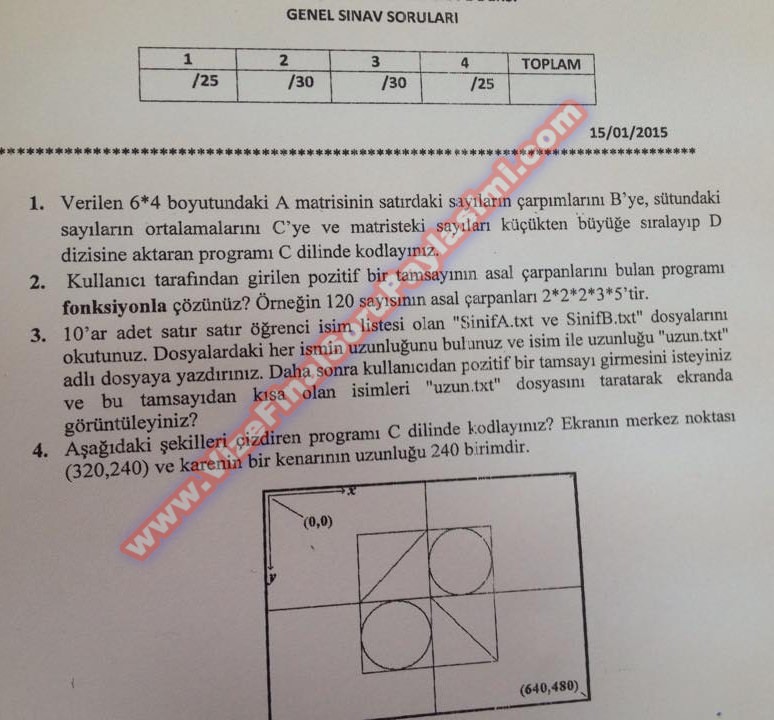 Algoritma ve Programlama Vize-2/Mazeret Soruları 5-01-2015, 23:40