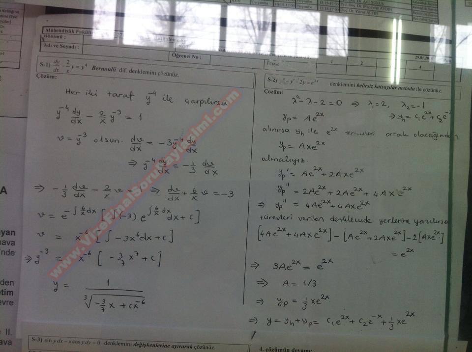 Mühendislik Matematiği (Diferansiyel Denklemler) Vize Soruları 20-07-2014, 21:59