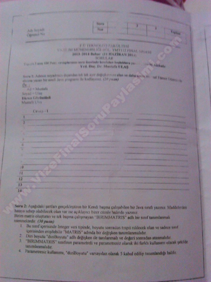 Vize ve Final Soruları / Fırat Üniversitesi / Algoritma ve Programlama
