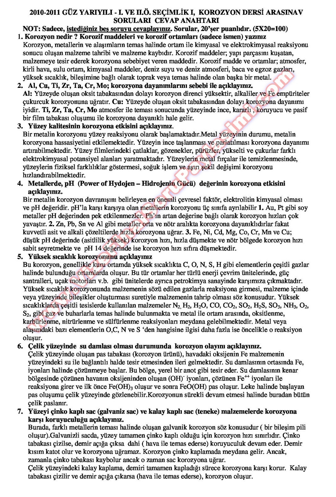 Korozyon Dersi Final Soruları 10-07-2014, 13:09