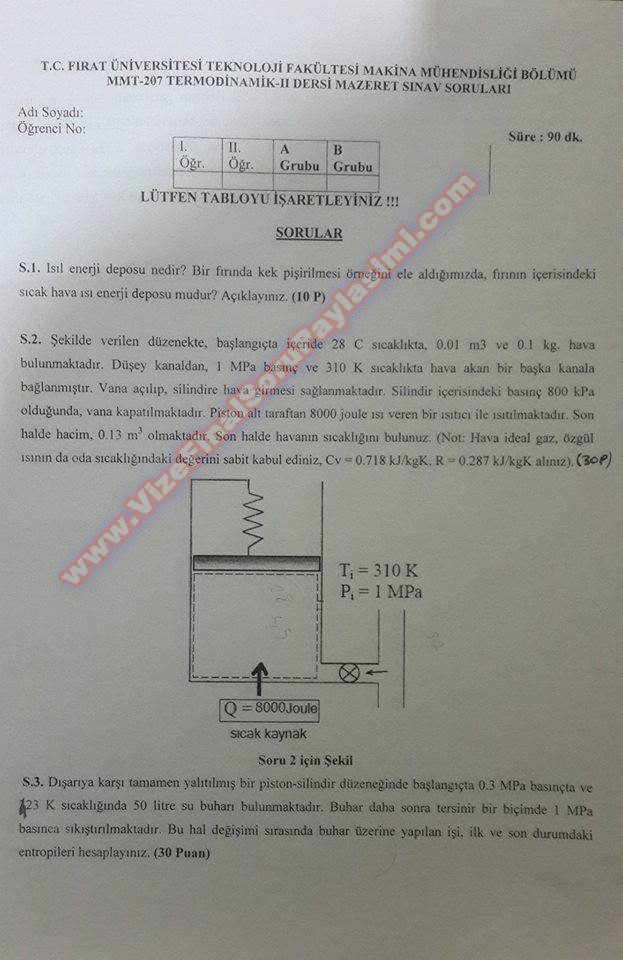 Vize ve Final Soruları / Fırat Üniversitesi / Termodinamik-2