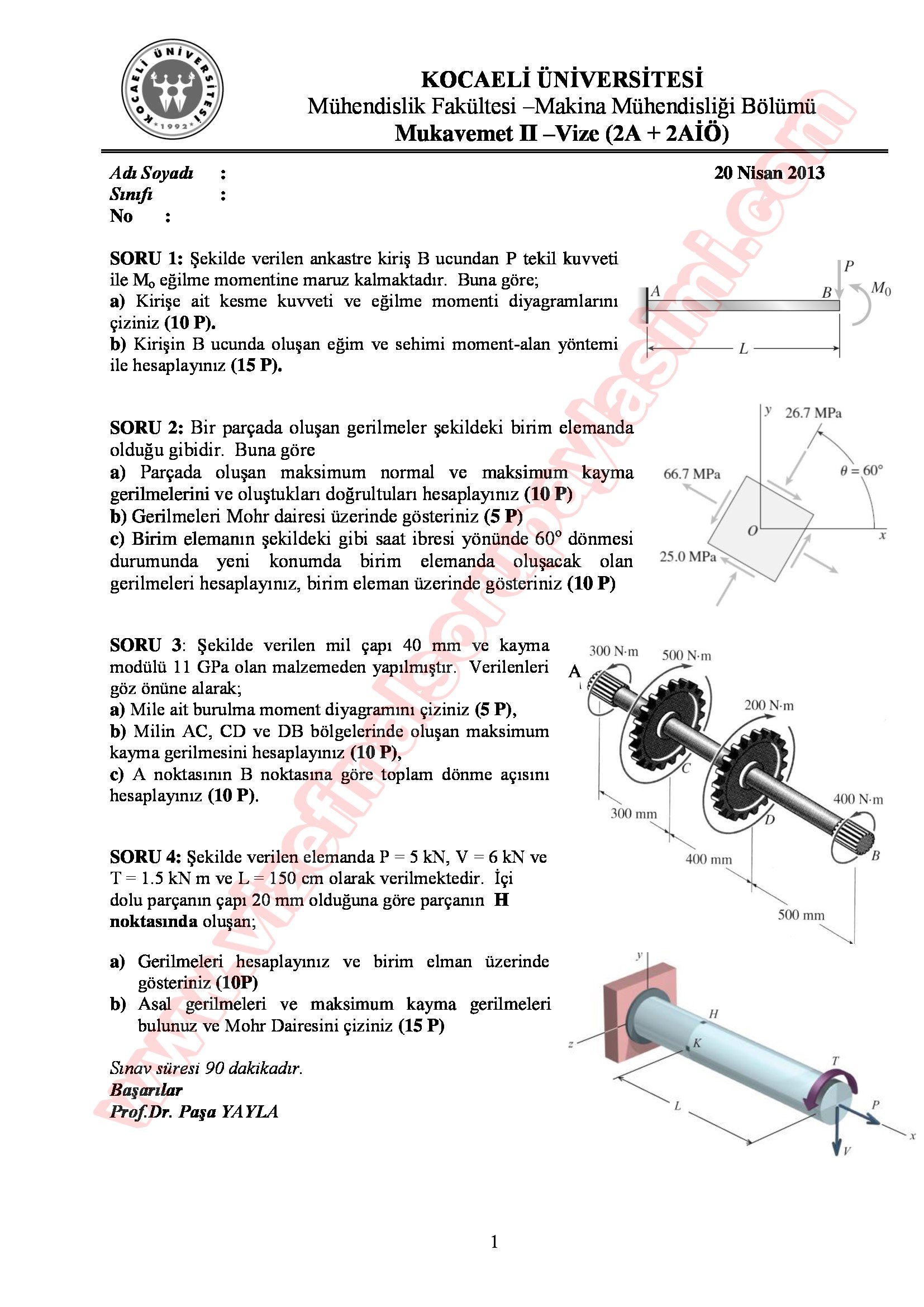 Mukavemet-2 Vize Soruları Ve Cevapları - 20.04.2013